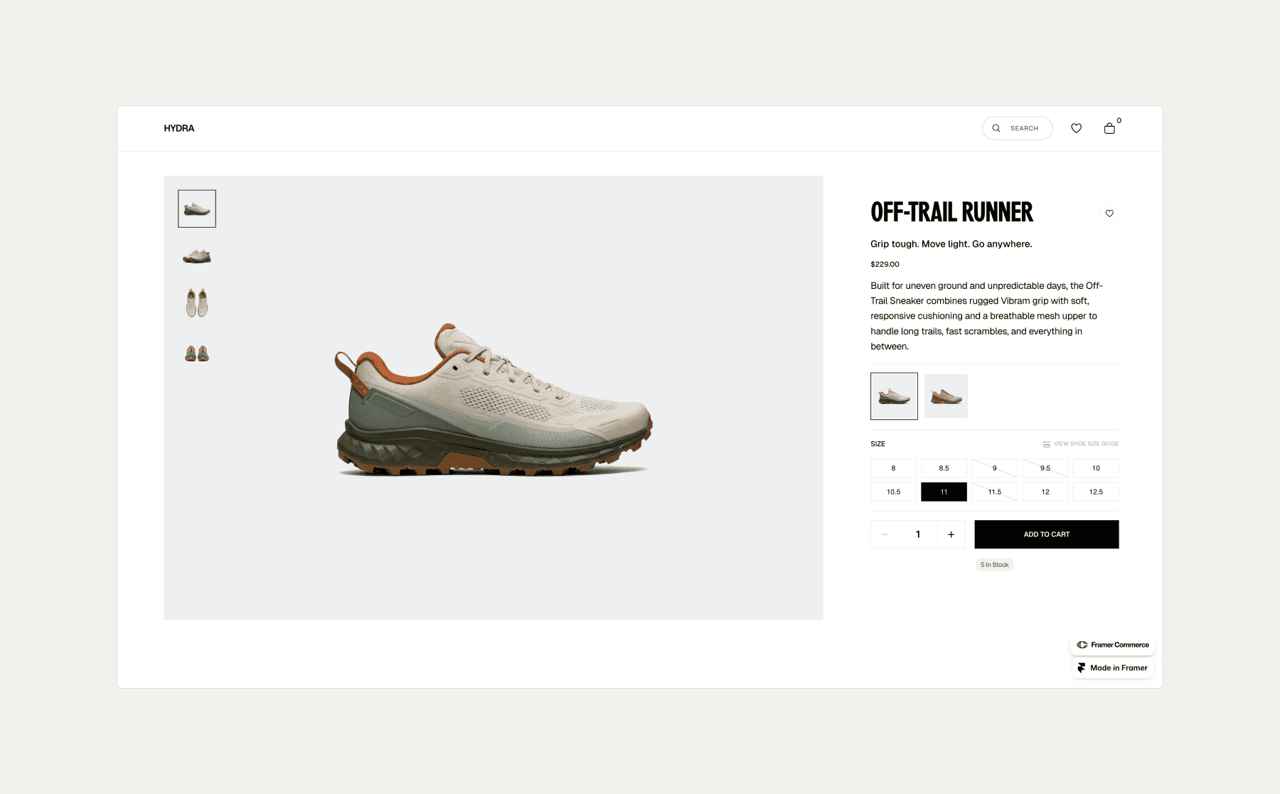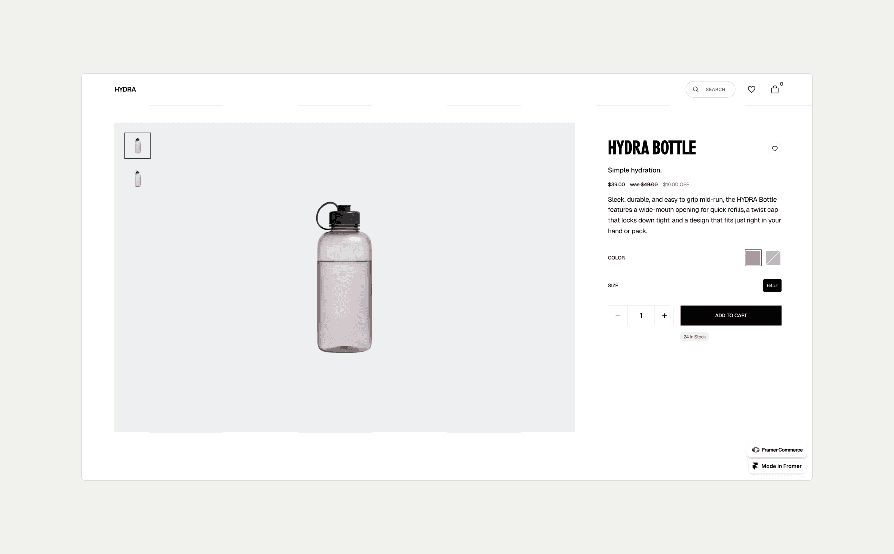 Just log into Framer to explore how Framer Commerce works, no extra signup.